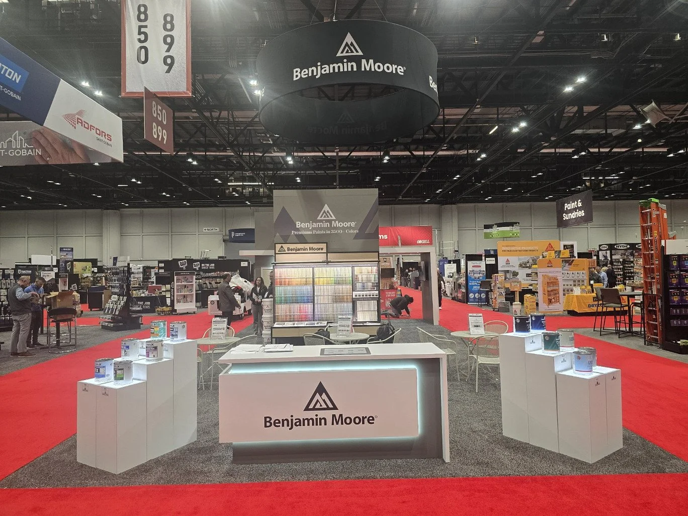 Prominent Benjamin Moore branding with dimensional lettering for maximum visibility across the show floor.
